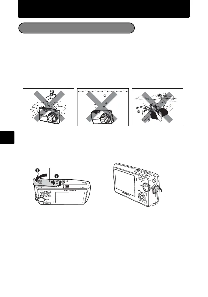 ( So lange die Kamera nass ist, öffnen bzw. schließen Sie weder den Akku-/Kartenfachdeckel
