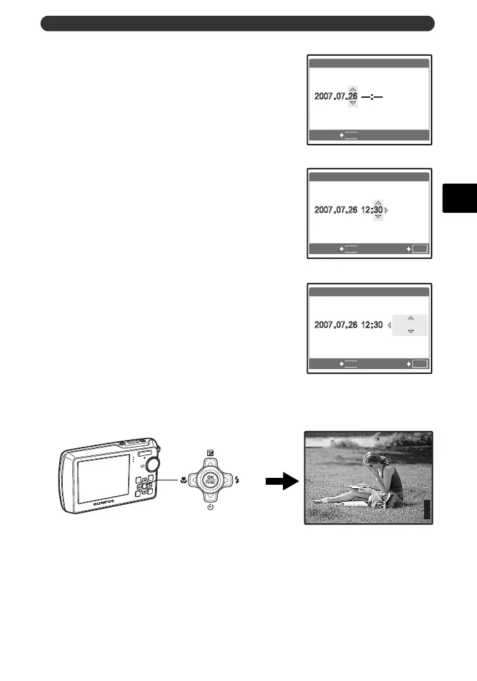 • For precise time setting, press the o button as the time signal strikes 00 seconds.