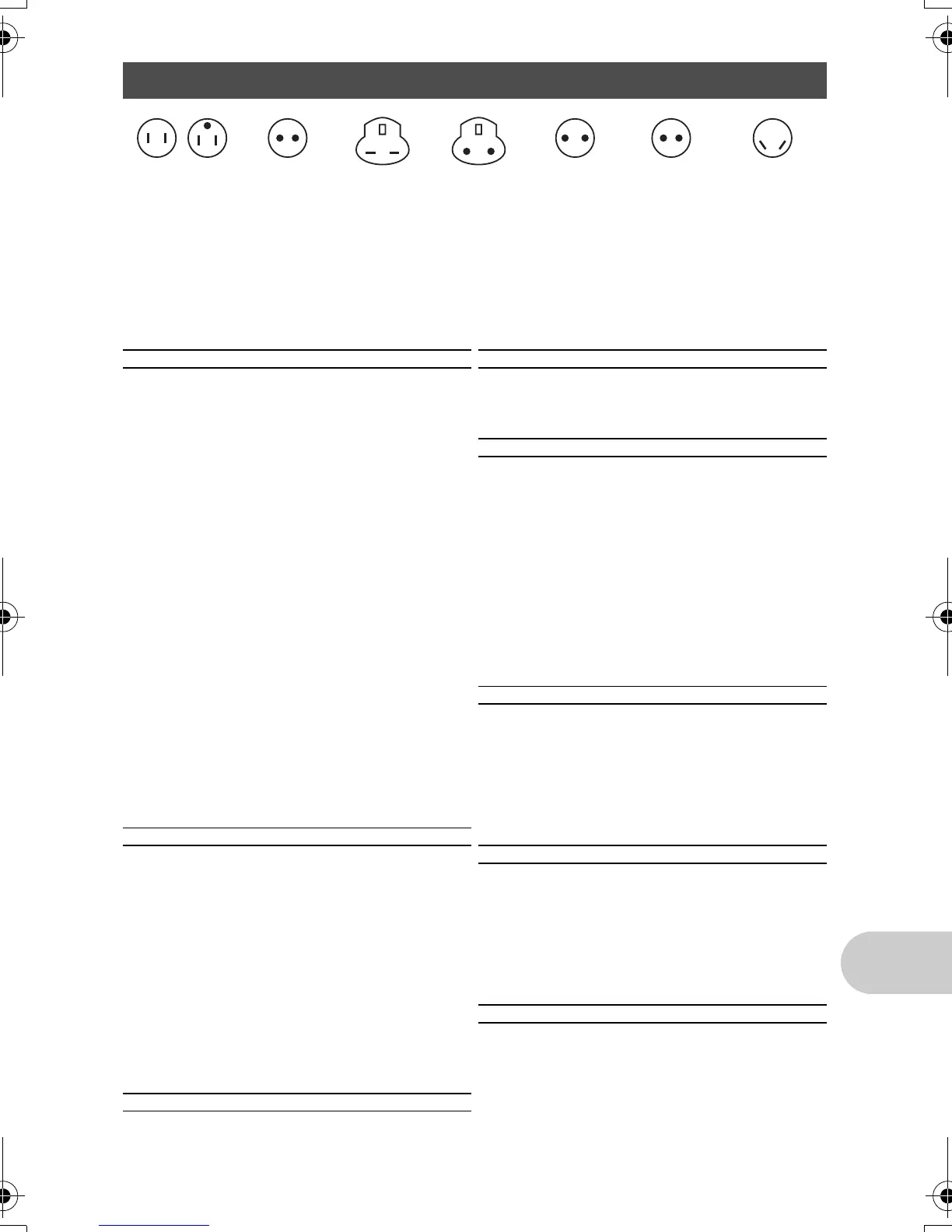 New Zealand 230/240 50 O South Africa 220/230 50 C/BF