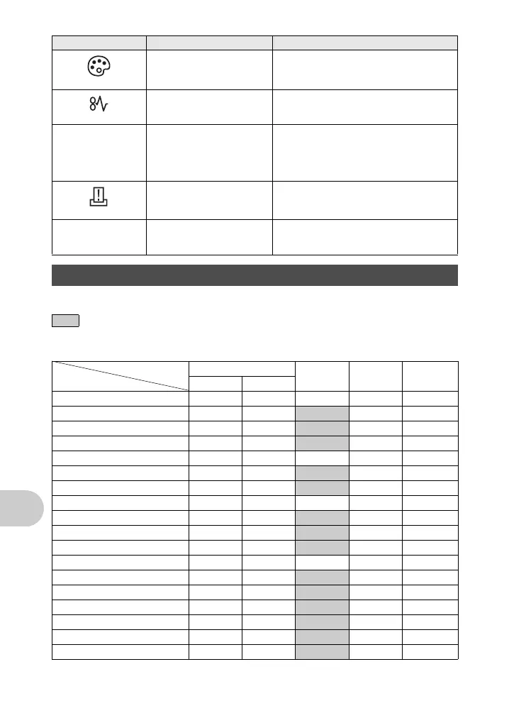 Some functions cannot be set in certain shooting modes. For more details, refer to the table