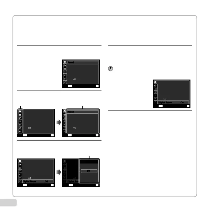 Press the m button during shooting or playback to display the setup menu. The setup menu provides access