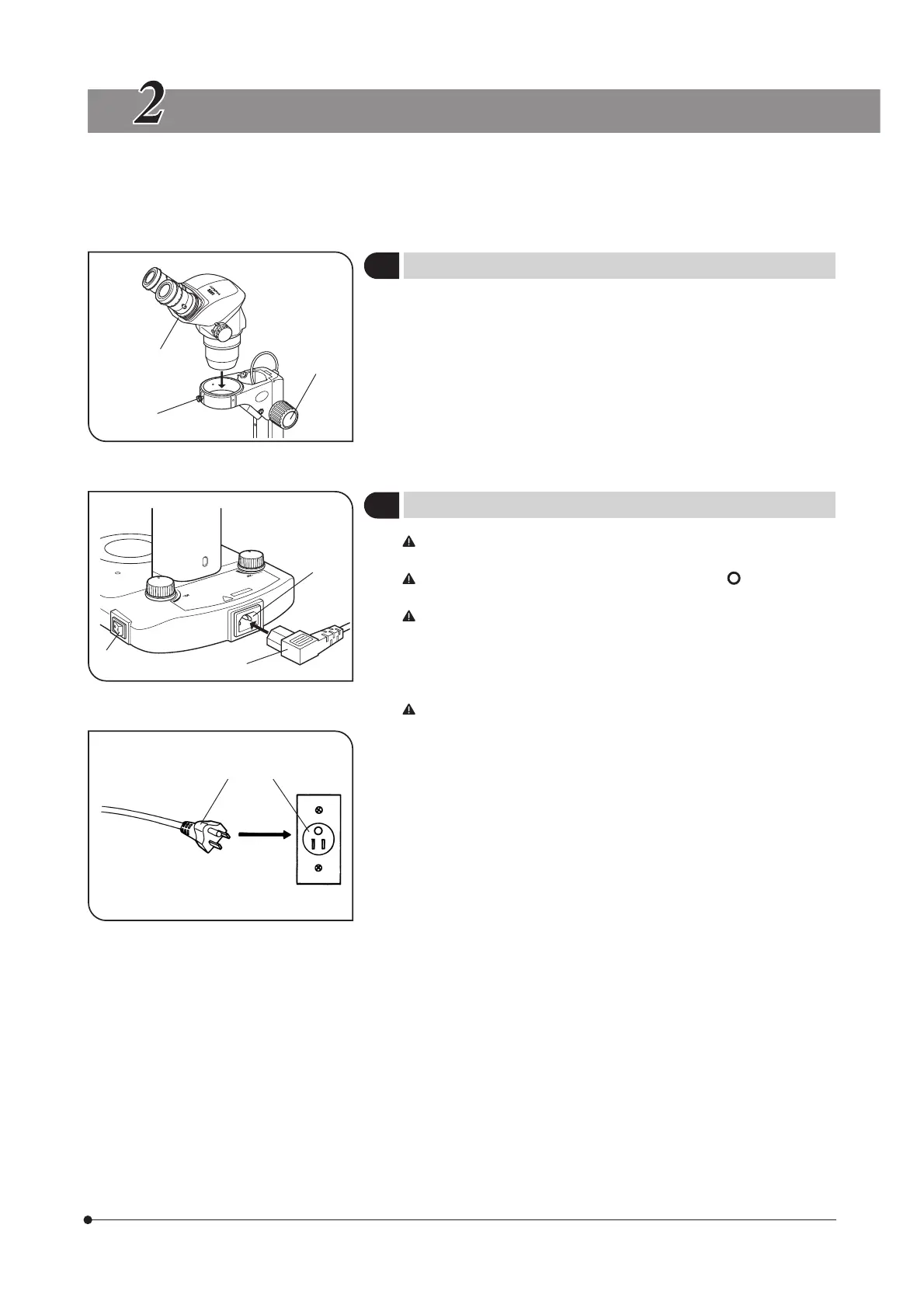 2. Gently insert an applicable microscope body ² and tighten the