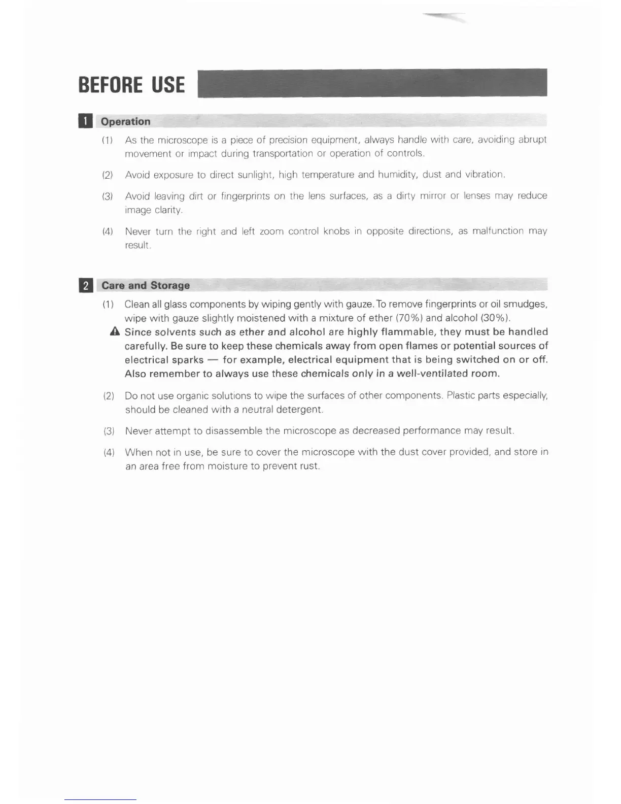 Olympus SZ4045 - Before Use; Operation Guidelines; Care and Storage Instructions