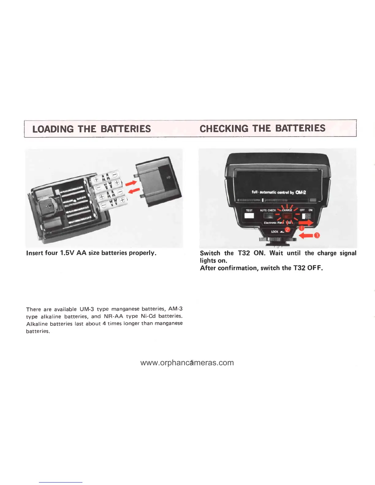 Olympus T32 - Loading the Batteries; Checking the Batteries