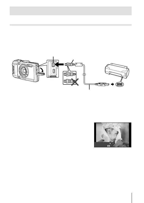 By connecting the camera to a PictBridge-compatible printer with the USB