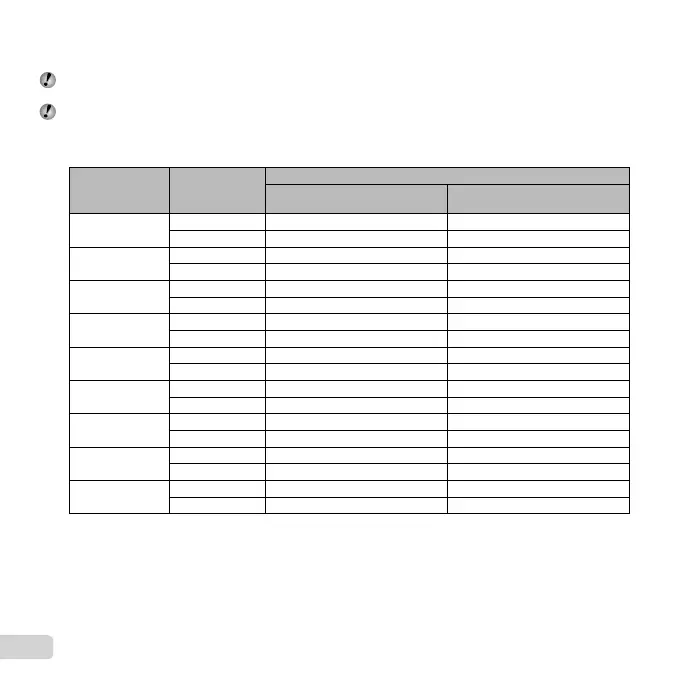 The fi gures in the table below are the number of the storable pictures when using the internal memory formatted.