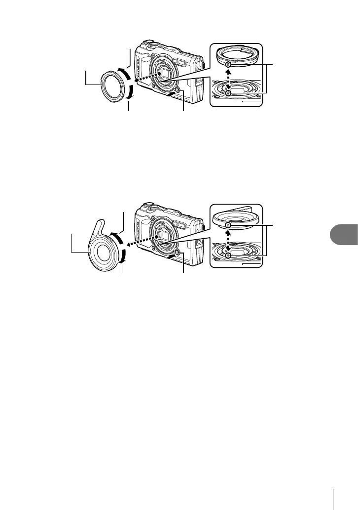Align the mounting marks and rotate the ring in the “attach” direction until it clicks into