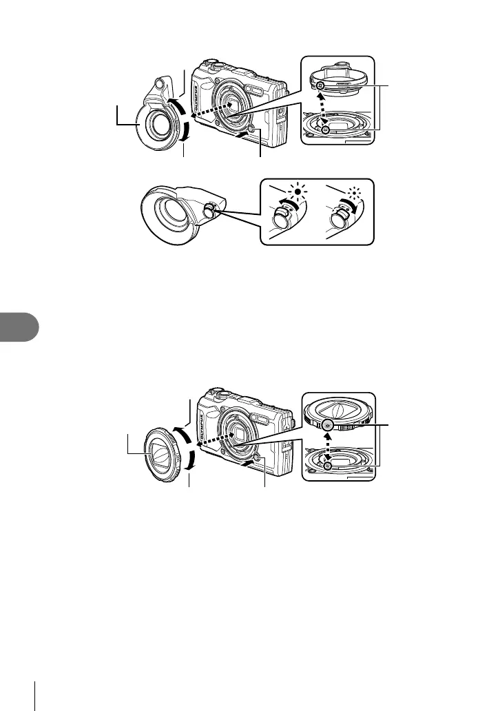 Keeping the lens ring release button pressed, rotate the diffuser in the “remove”
