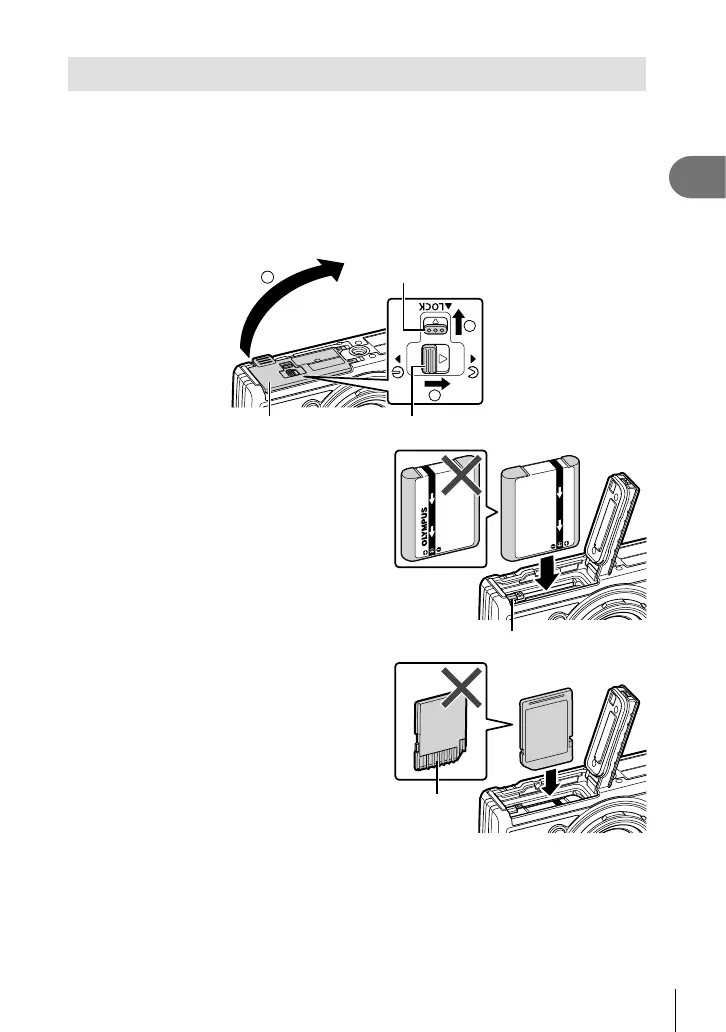 Opening the battery/card compartment cover.