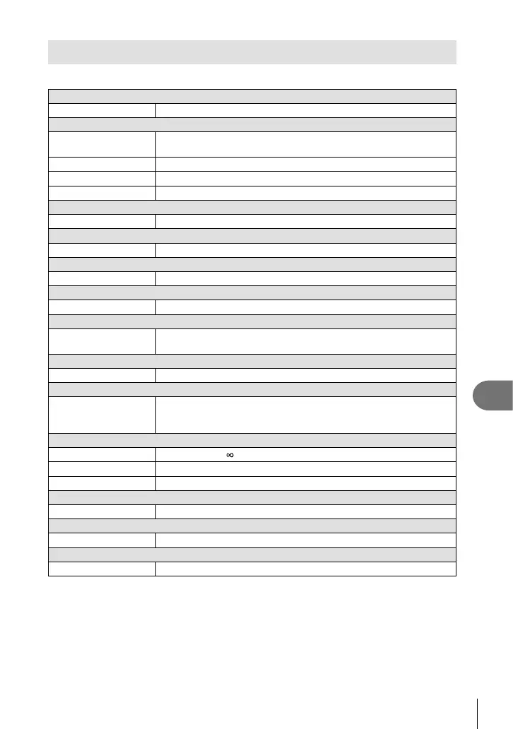 Microscope mode 0.01 m (0.03 ft.) to 0.3 m (1.0 ft.) (f=5.4 mm to 18.0 mm)