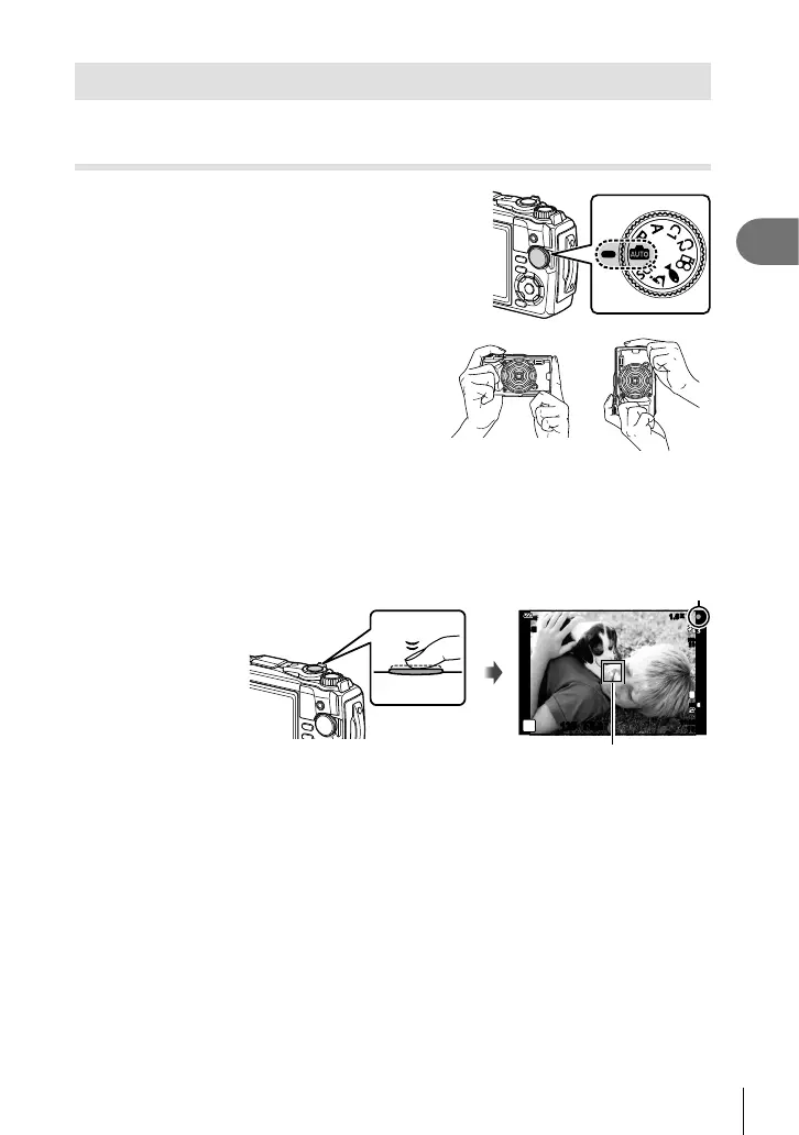 • Display the subject in the center of the monitor, and lightly press the shutter button