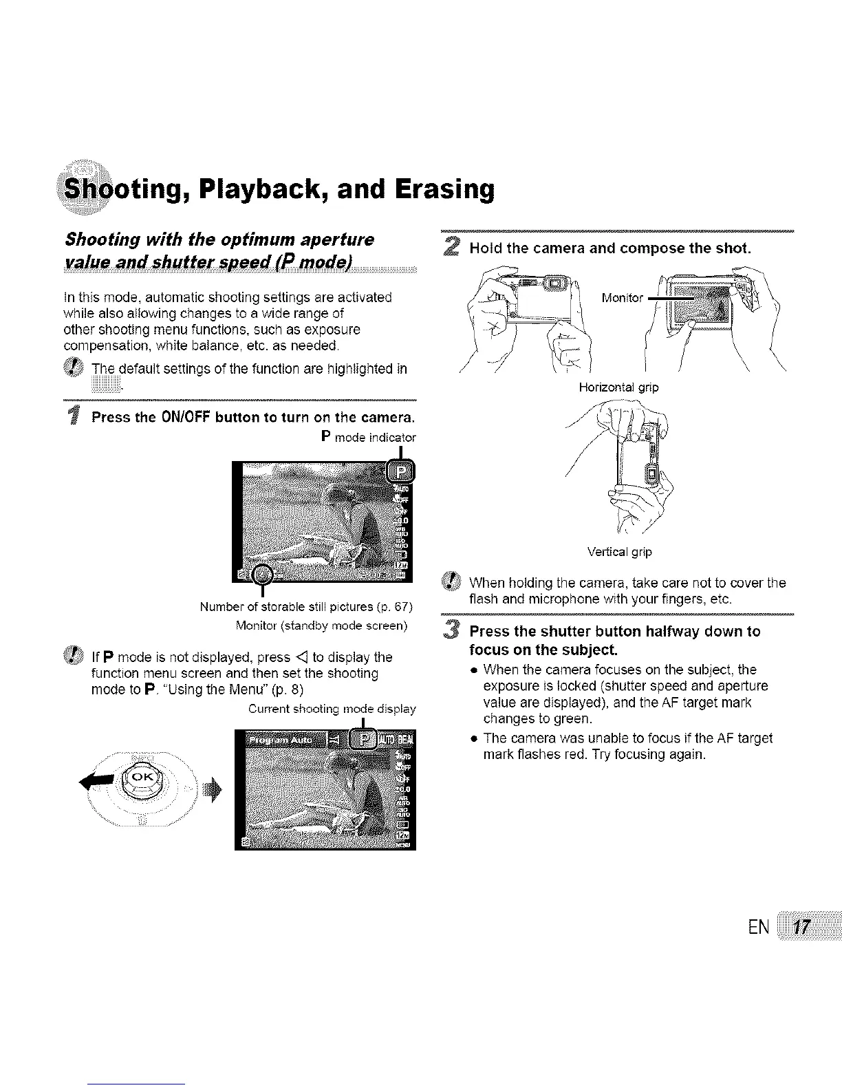 3 Press the shutter button halfway down to