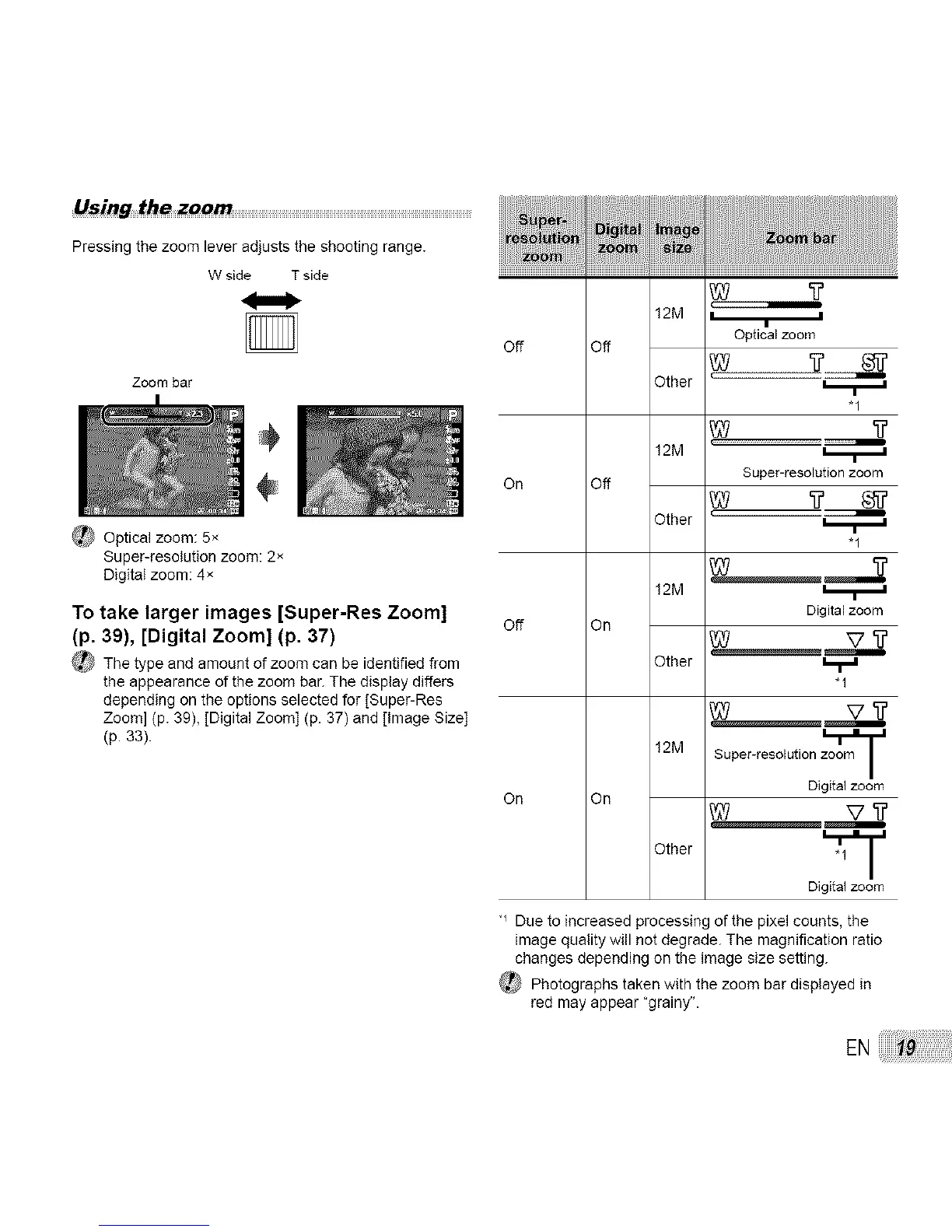 Zoom] (p. 39). [Digital Zoom] (p. 37) and [Image Size]