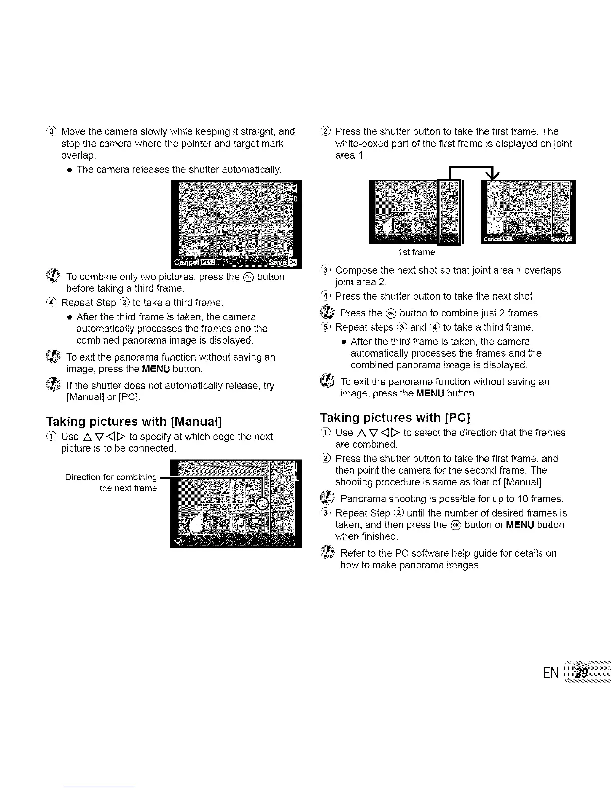 _) Panorama shooting is possible for up to 10 frames.