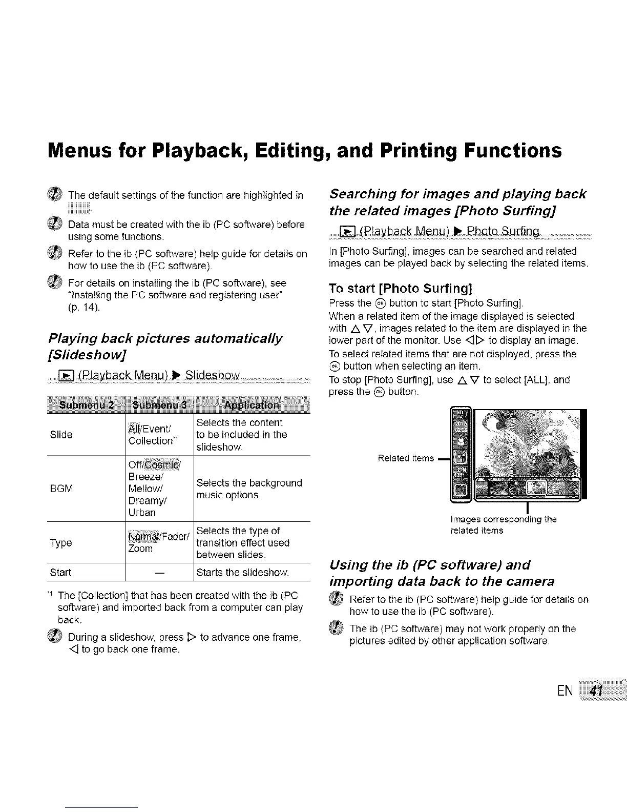 .......[] (elayback Menu)_ S!:!desbo_.............................. To stop [Photo Surfing], use A V to select [ALL], and
