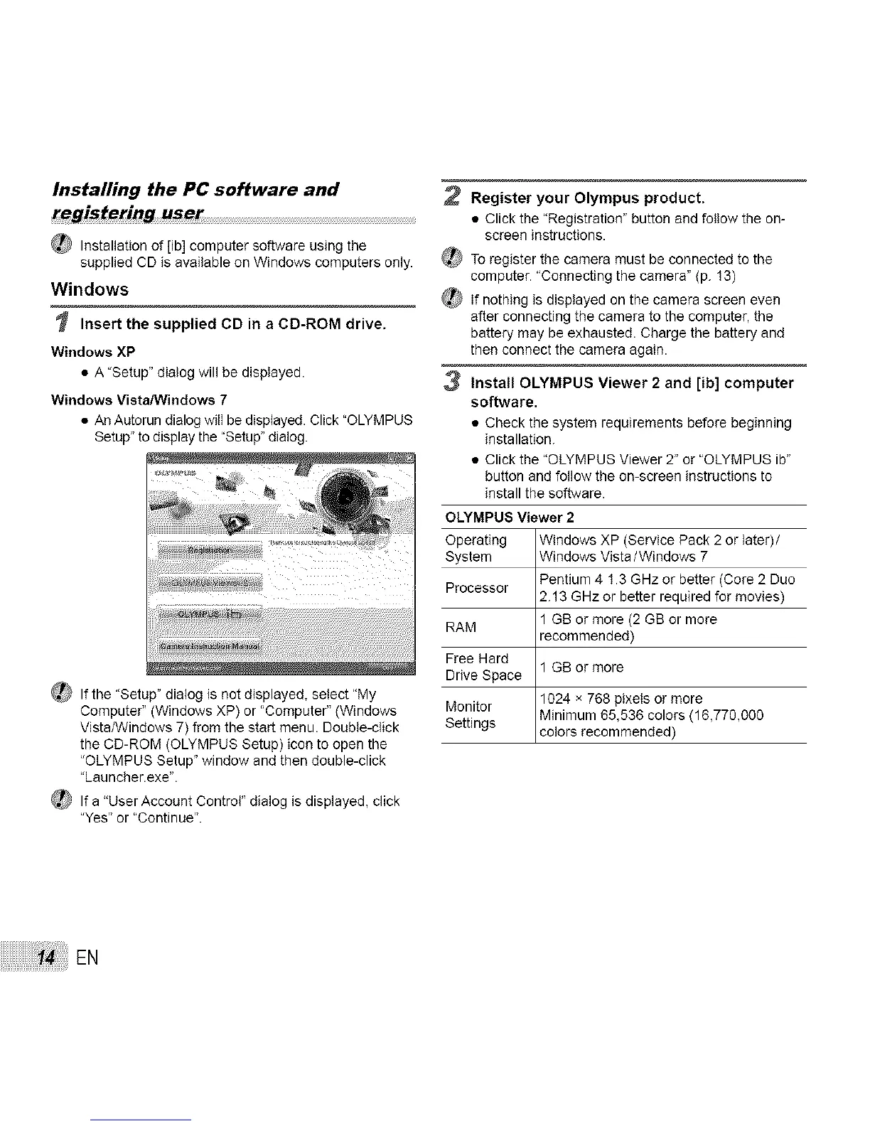 3 Install OLYMPUS Viewer 2 and [ib] computer