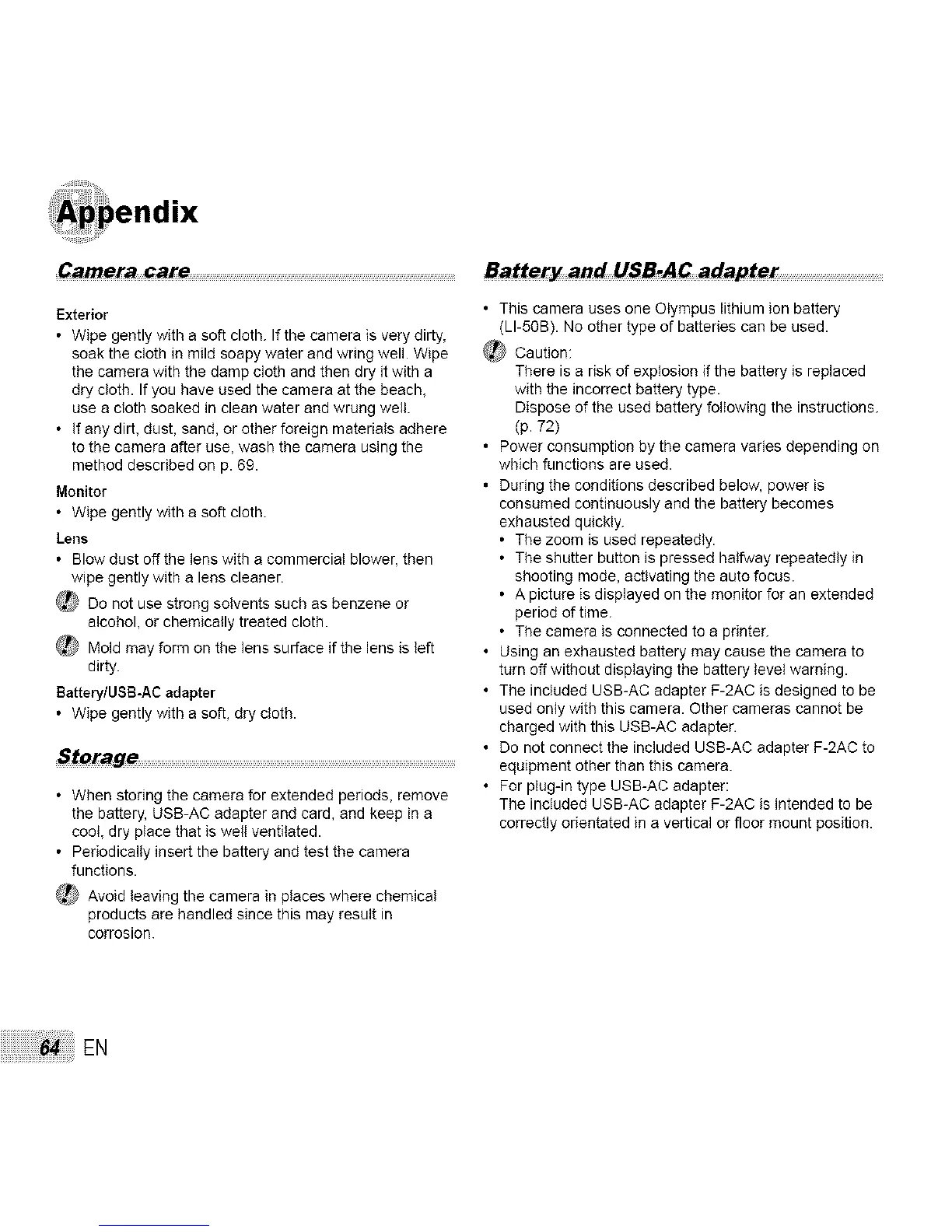 • This camera uses one Olympus lithium ion battery
