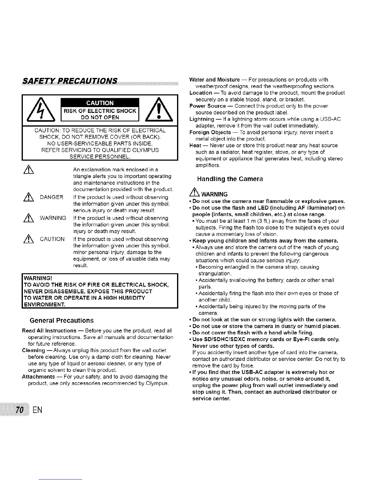REFER SERVICING TO QUALIFIED OLYMPUS