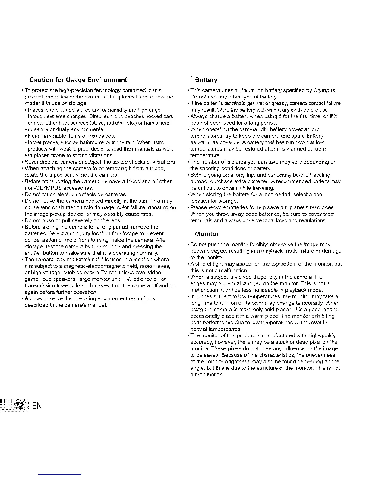 • This camera uses a lithium ion battery specified by Olympus