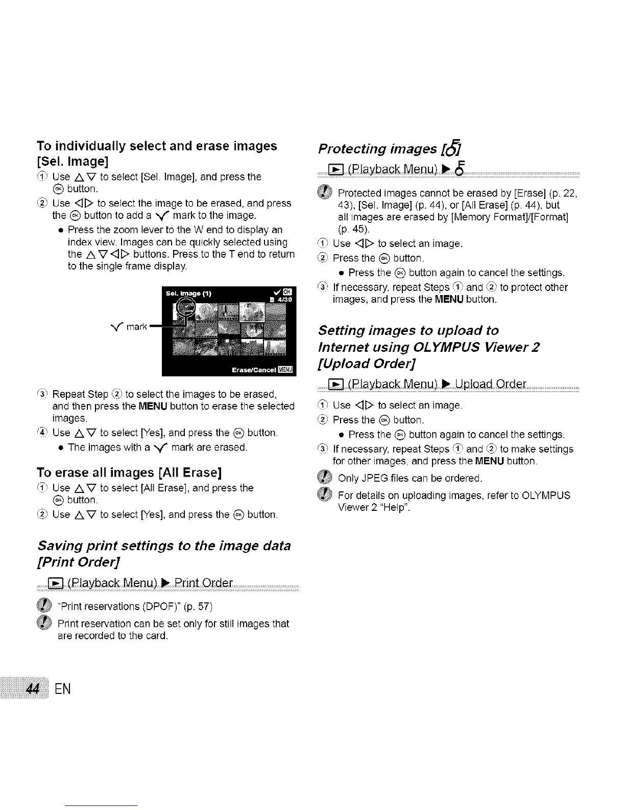 43), [Sel. Image] (p. 44), or rAIl Erase] (p. 44), but