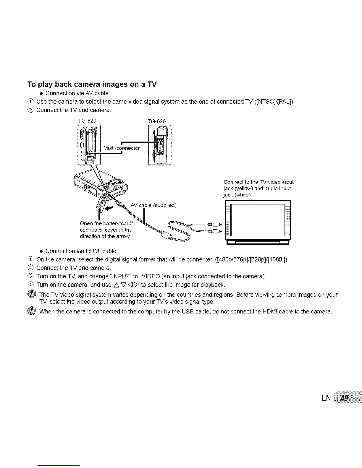 'i" Use the camera to select the same video signal system as the one of connected TV ([NTSC]/[PAL]).