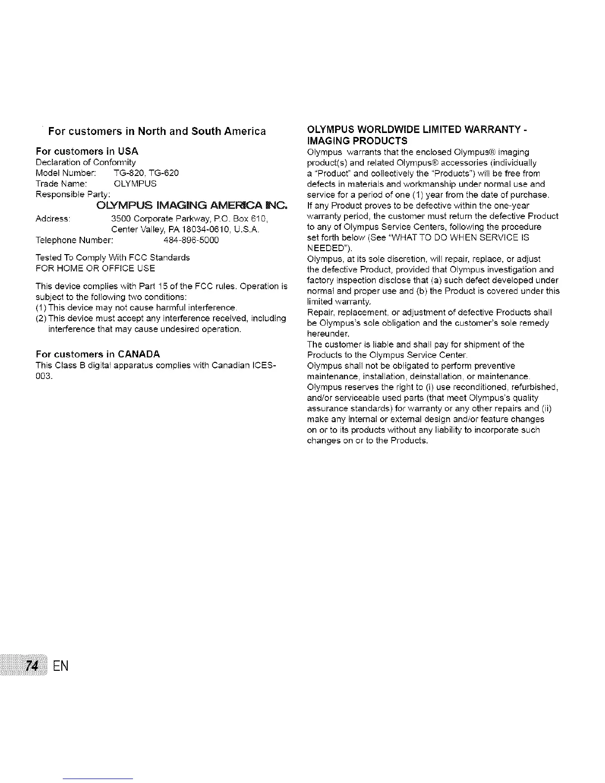 OLYMPUS WORLDWIDE LIMITED WARRANTY -