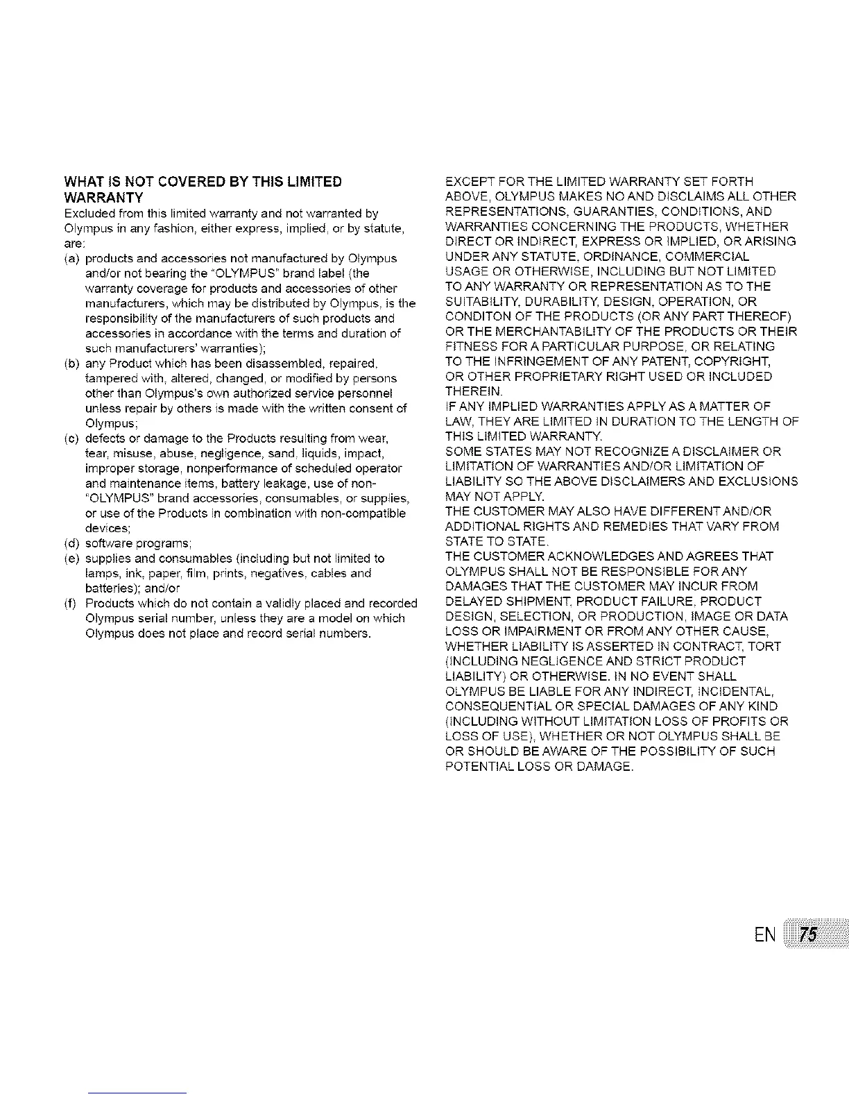 ABOVE. OLYMPUS MAKES NO AND DISCLAIMS ALL OTHER