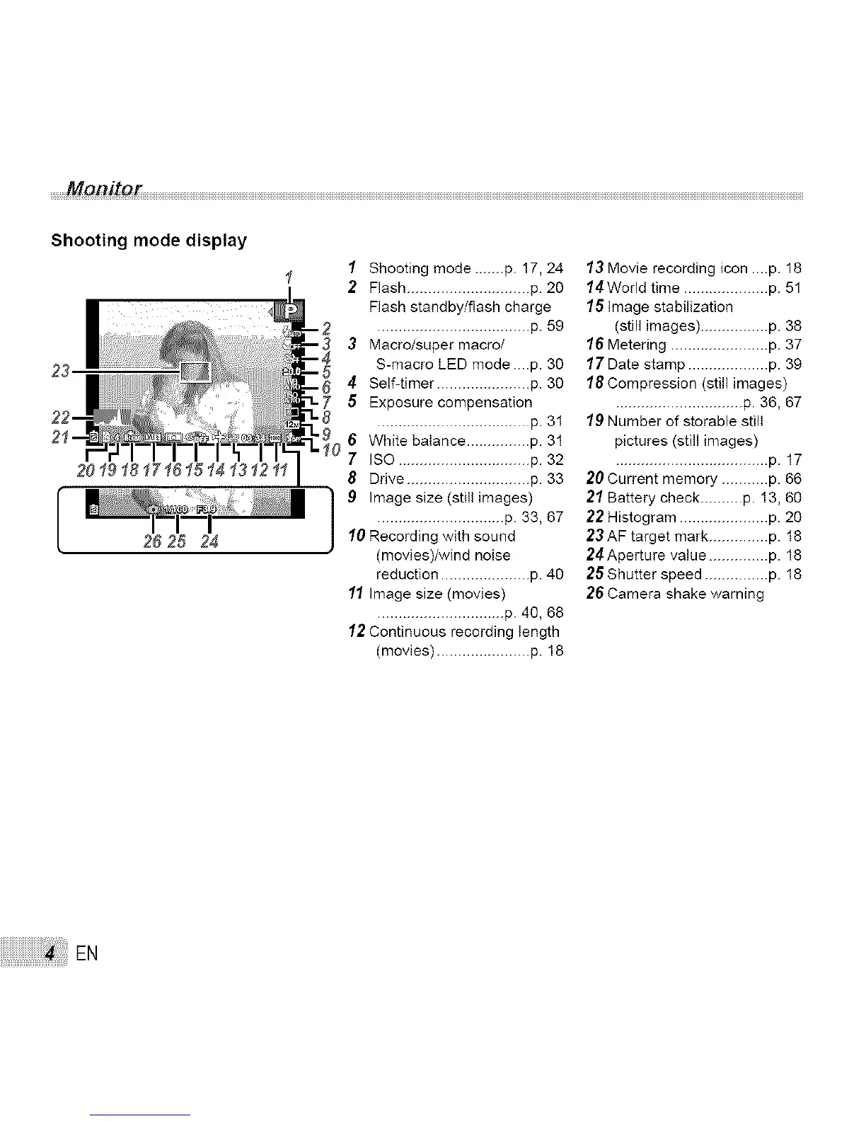 1 Shooting mode ....... p. 17, 24