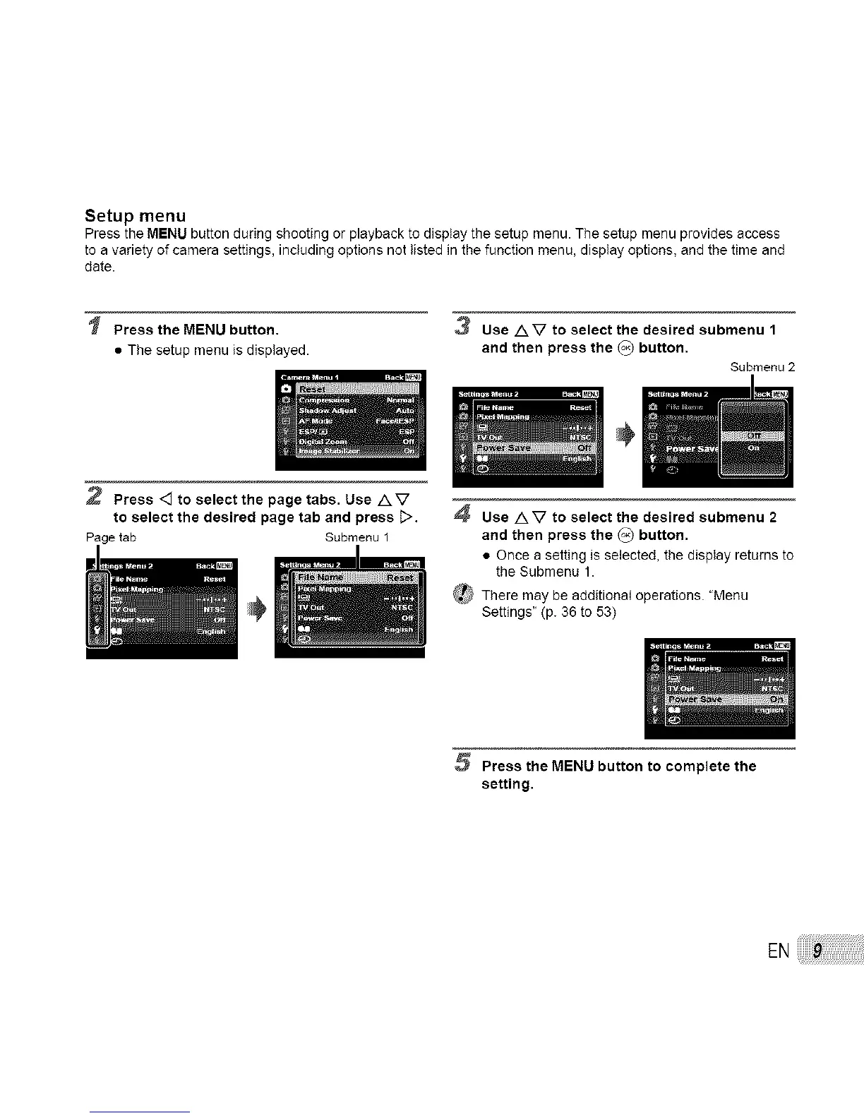 Setup menu