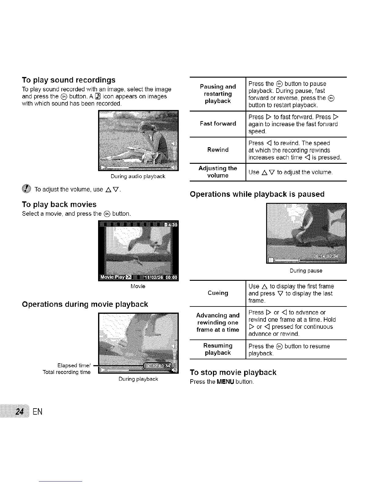 playback forward or reverse, press the _)