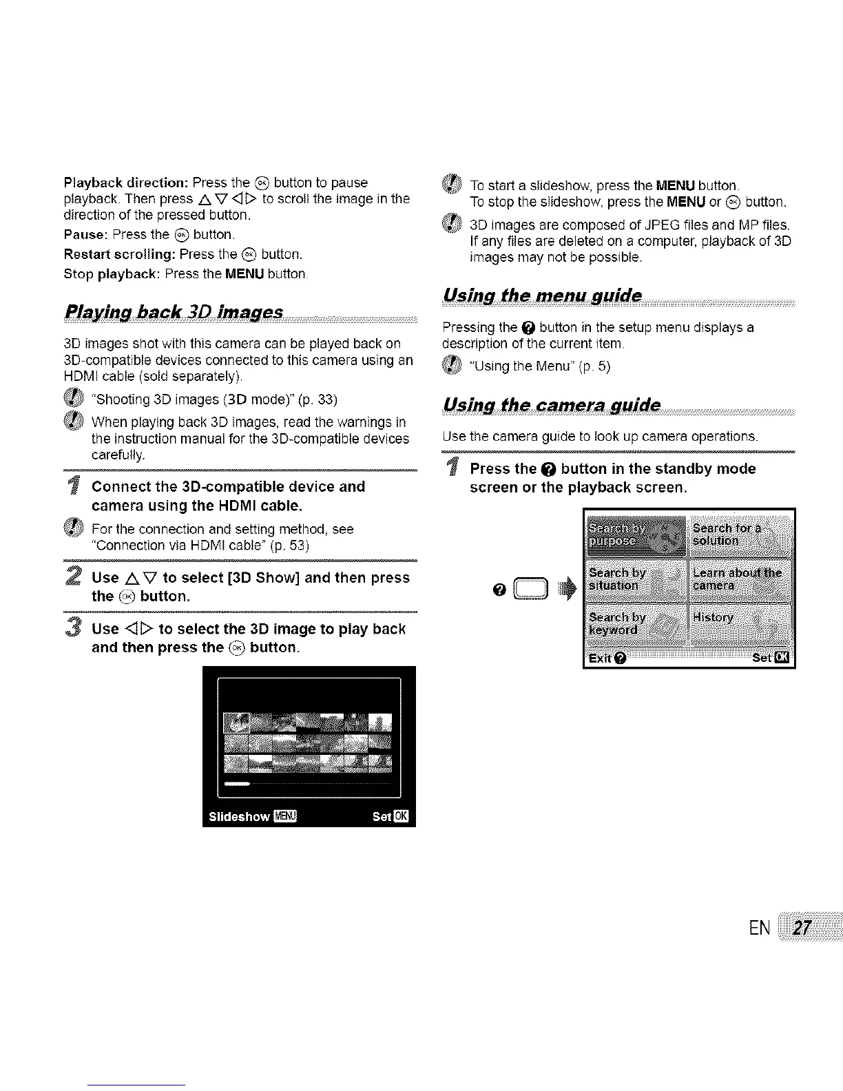 _ "Shooting 3D images (3D mode)" (p. 33)