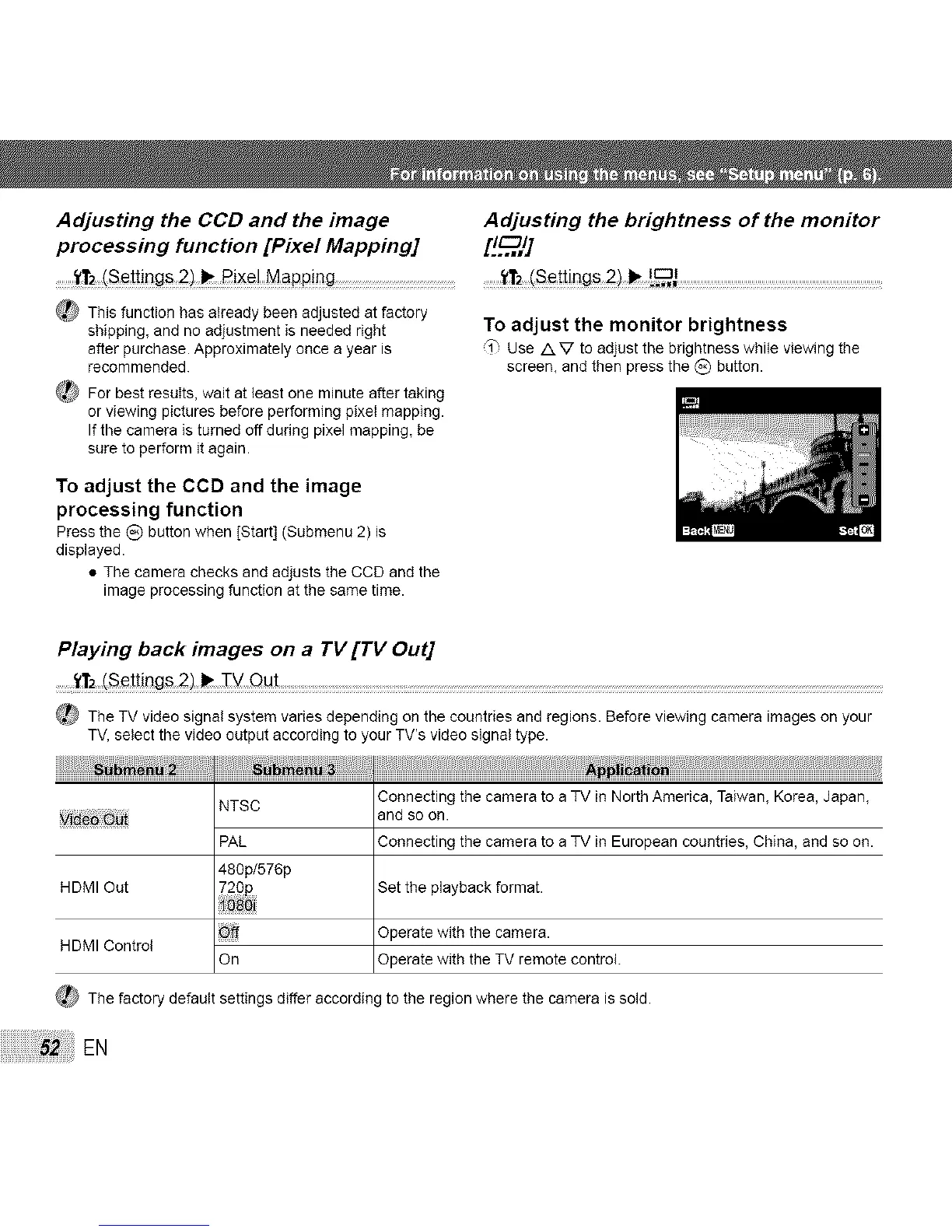 Adjusting the CCD and the image Adjusting the brightness of the monitor