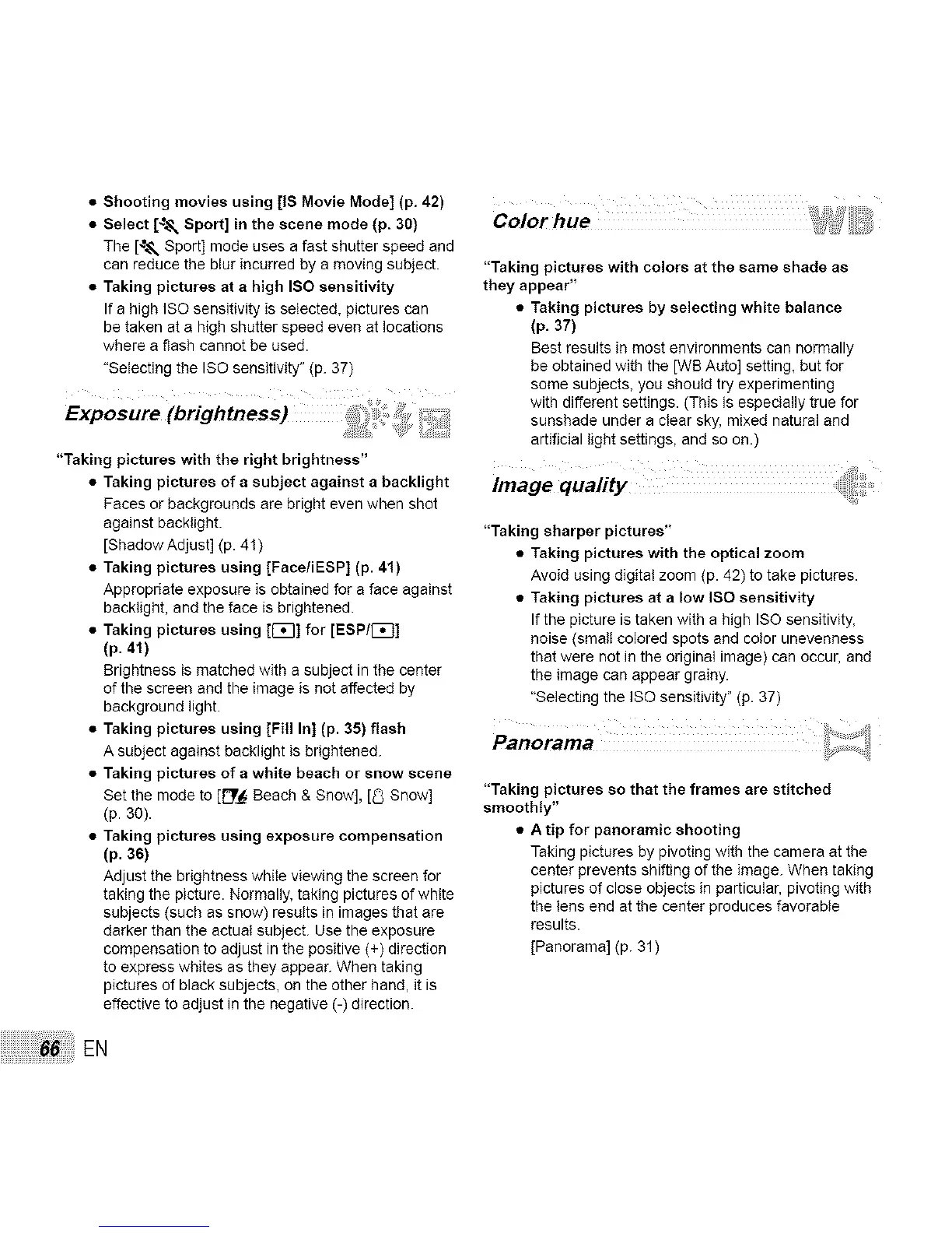 • Shooting movies using [IS Movie Mode] (p. 42)