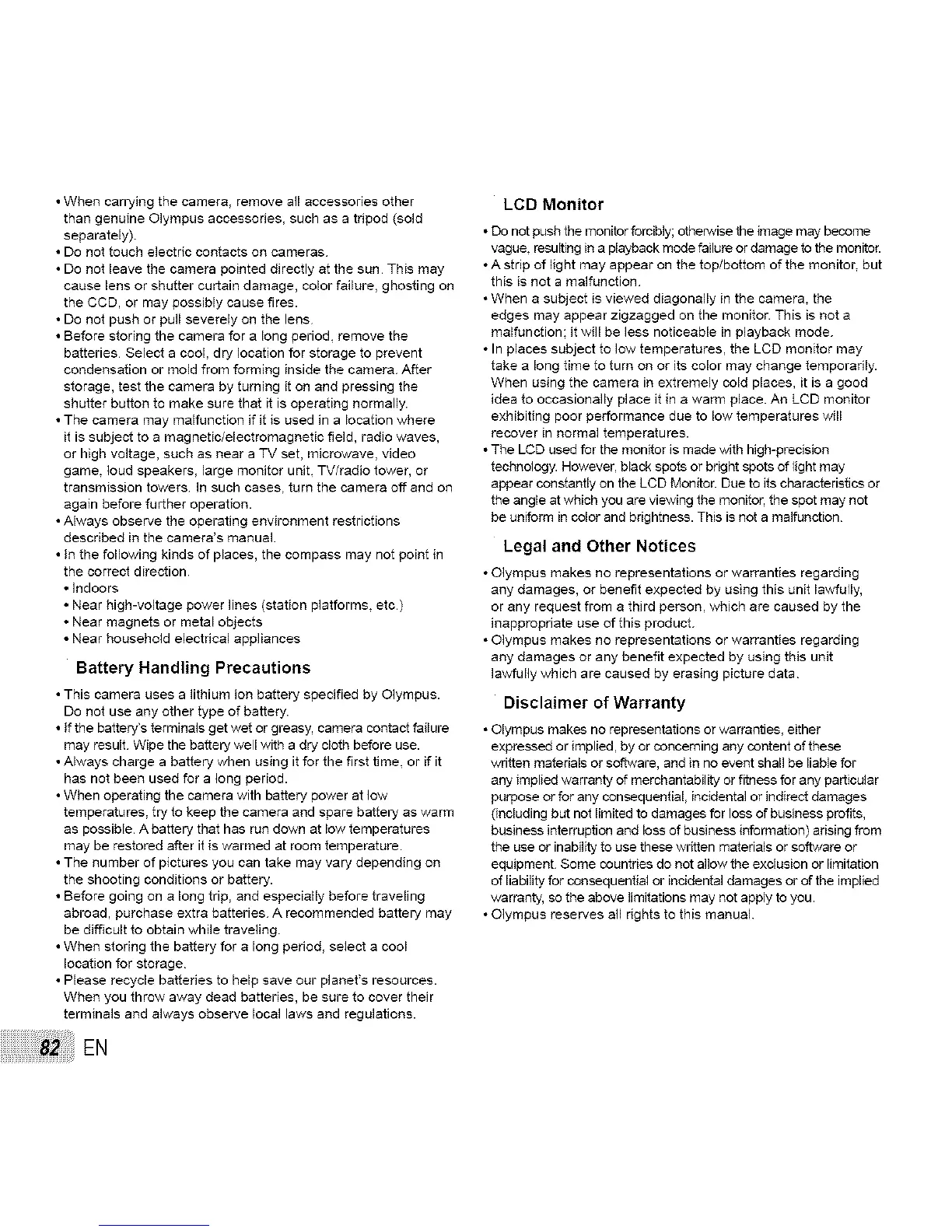 • Ifthe battery's terminals get wet or greasy, camera contact failure