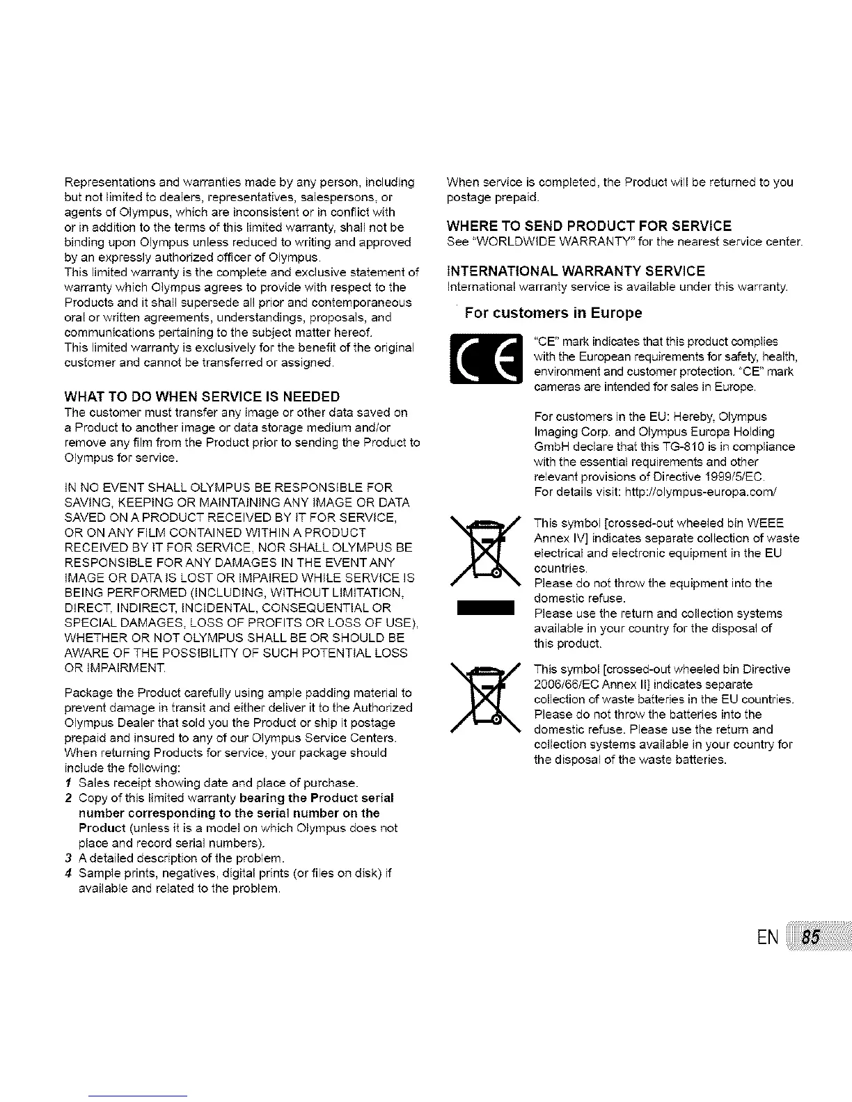 prepaid and insured to any of our Olympus Service Centers.