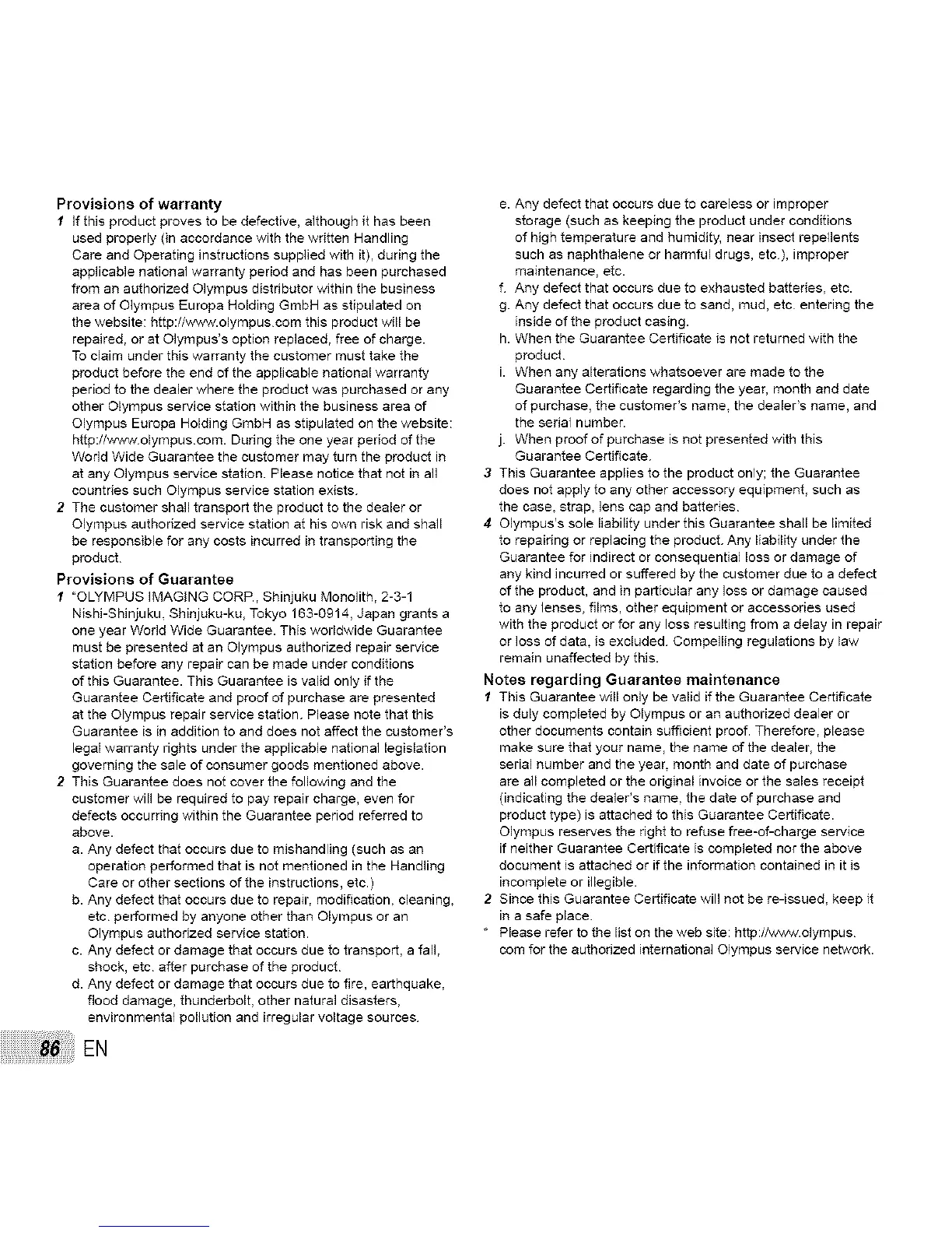 must be presented at an Olympus authorized repair service