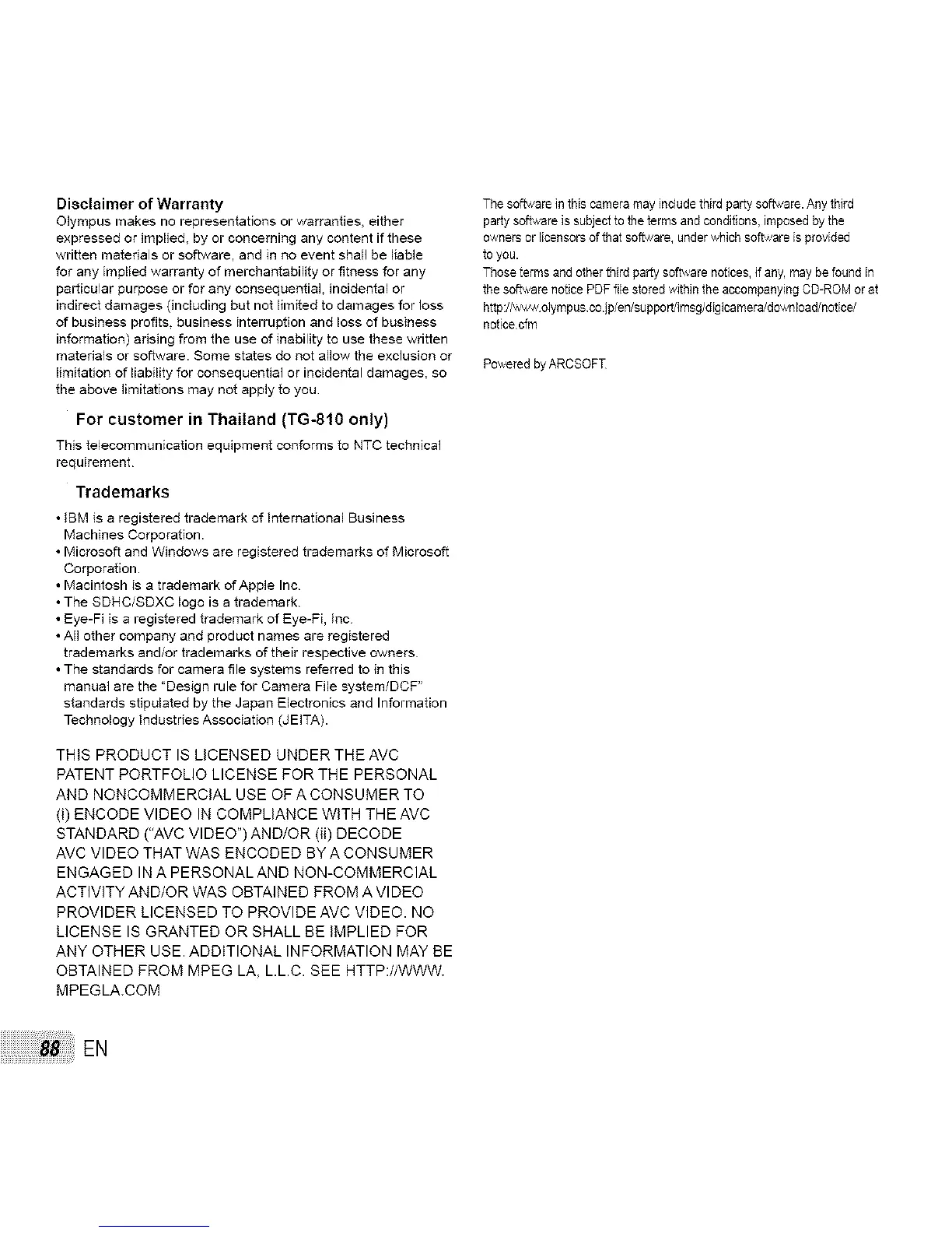 The softJ¢are in this camera may include third party sofb,,are. Any third
