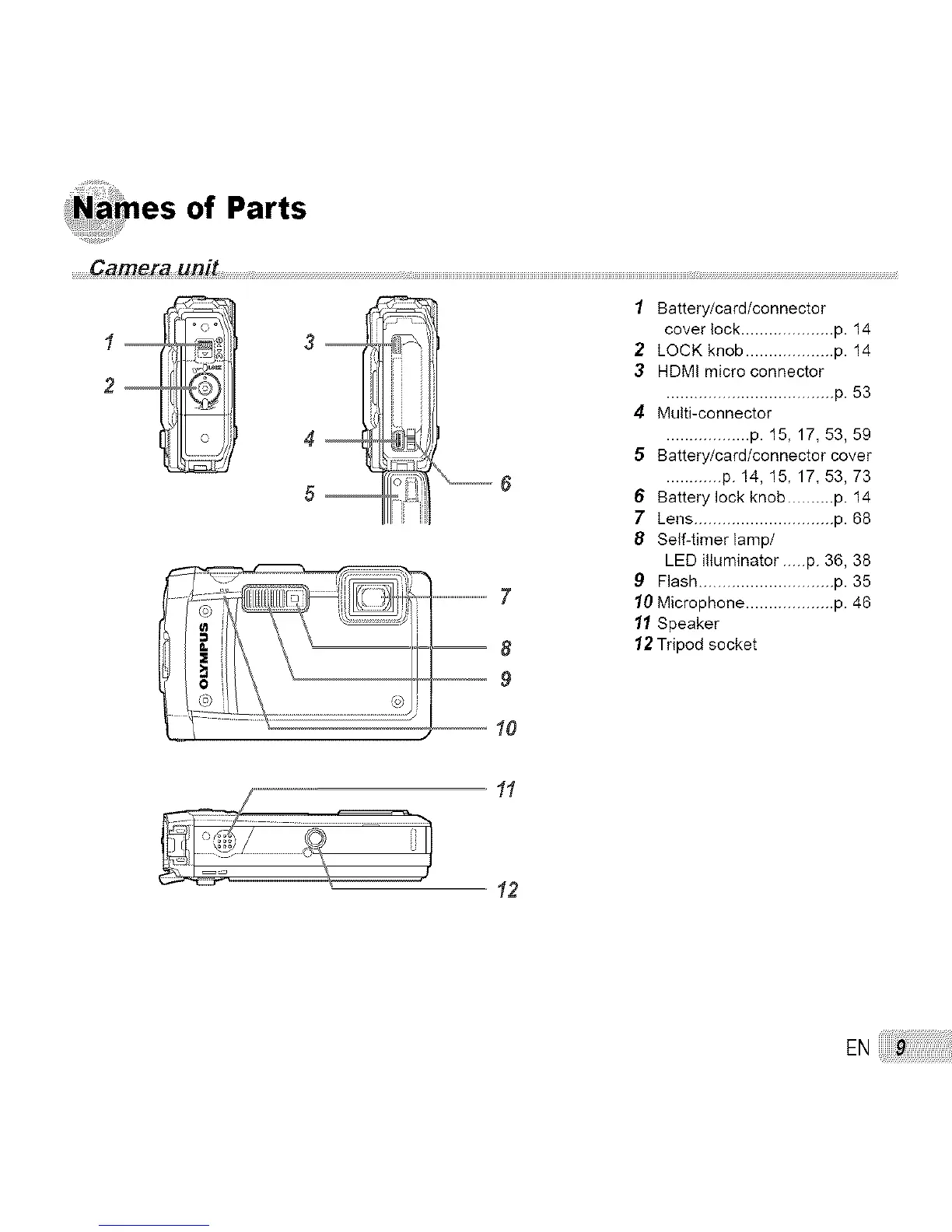6 Battery lock knob .......... p. 14