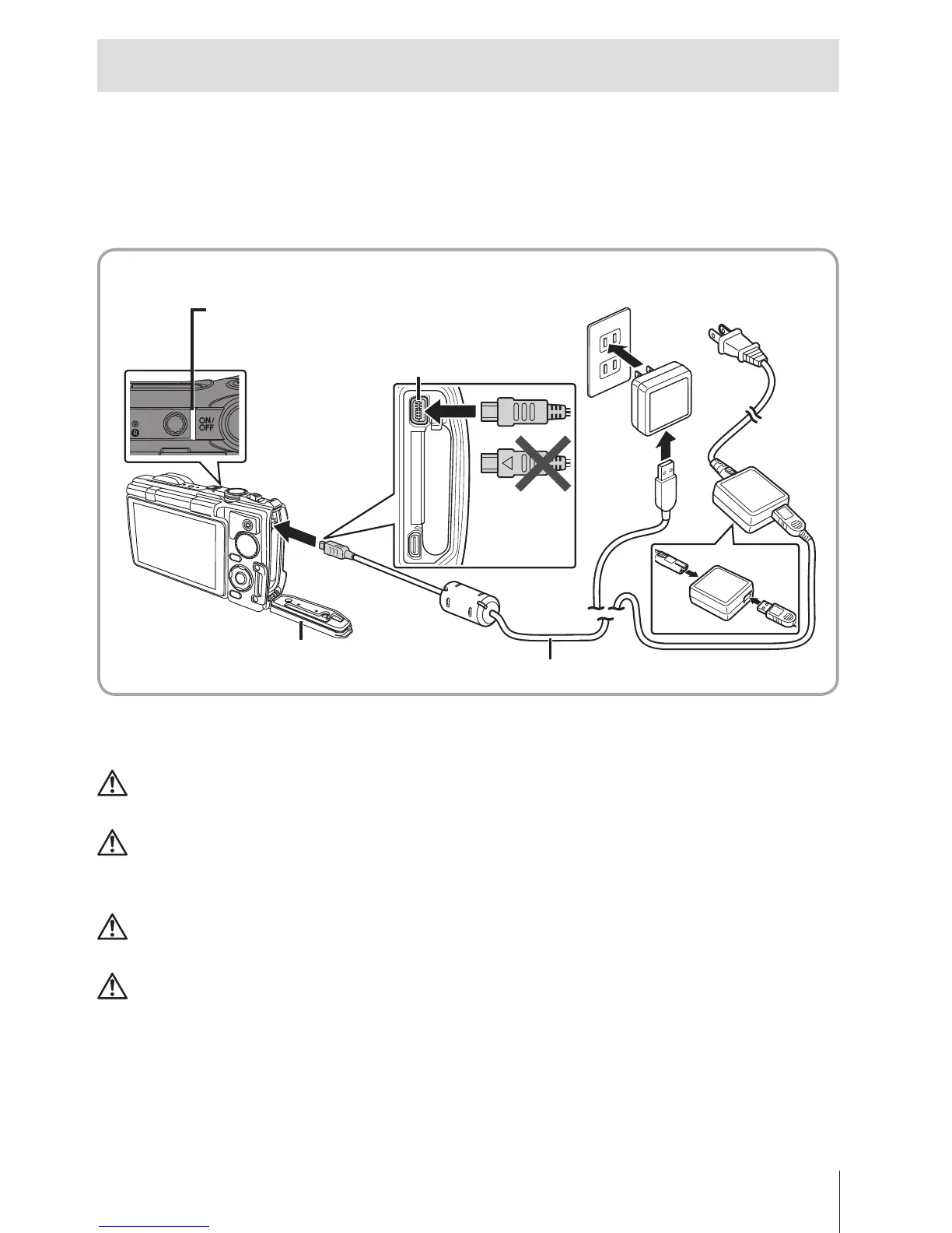 Never use any cable other than supplied or Olympus-designated USB cable.