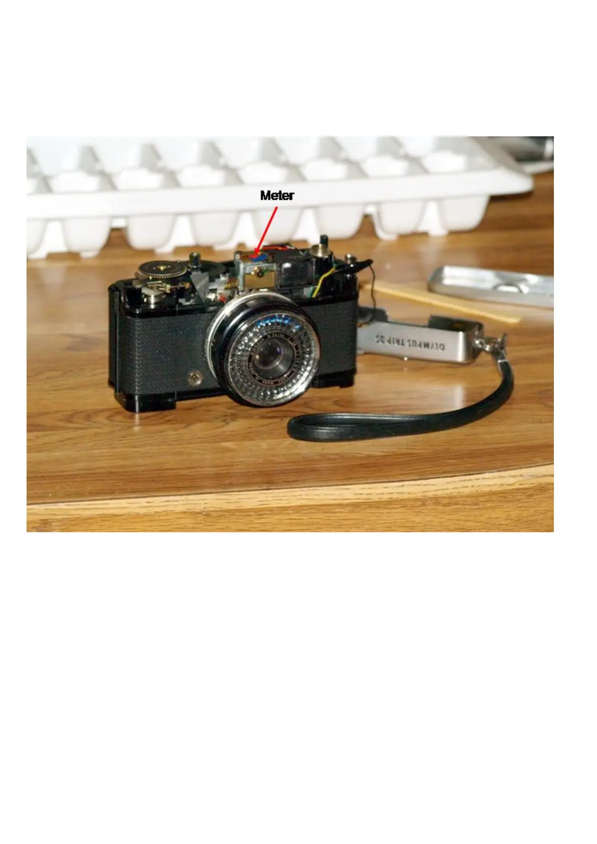 1. Remove the top of the camera. The top is held on with three screws. One is on the right side, just under the