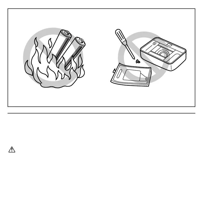• Do not put the used batteries into a fire and do not