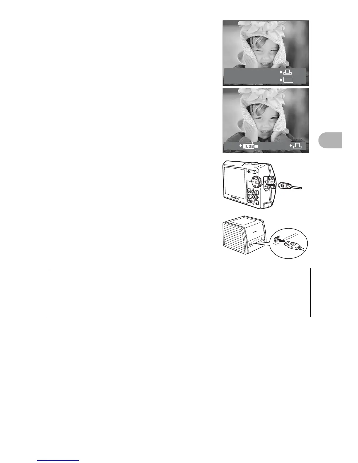 mode. With the camera turned off or in shooting mode, connect the USB cable.