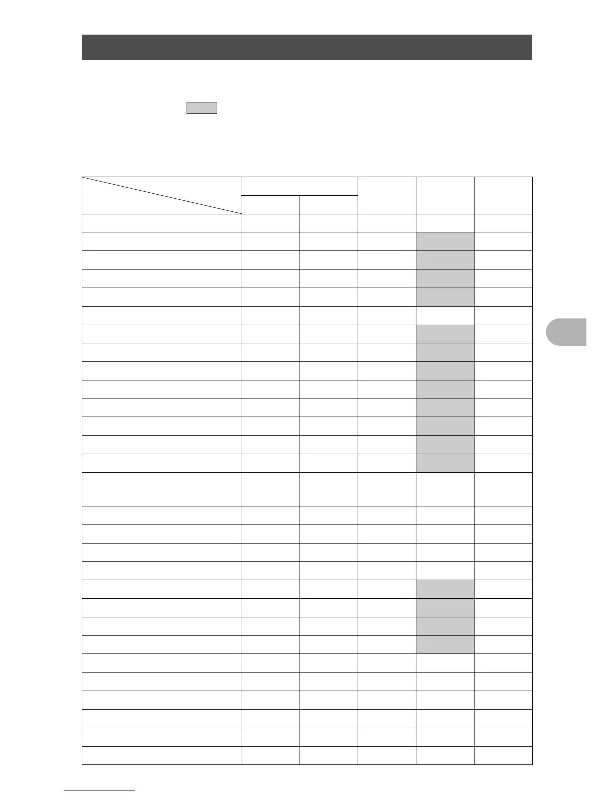 Grayed out areas ( ) in the s column indicate that to enable the shooting