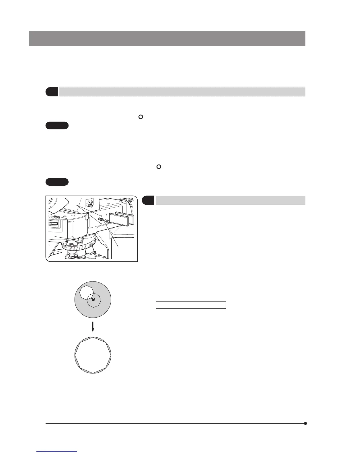 7. While pushing in the field iris diaphragm knob 2, enlarge the field iris