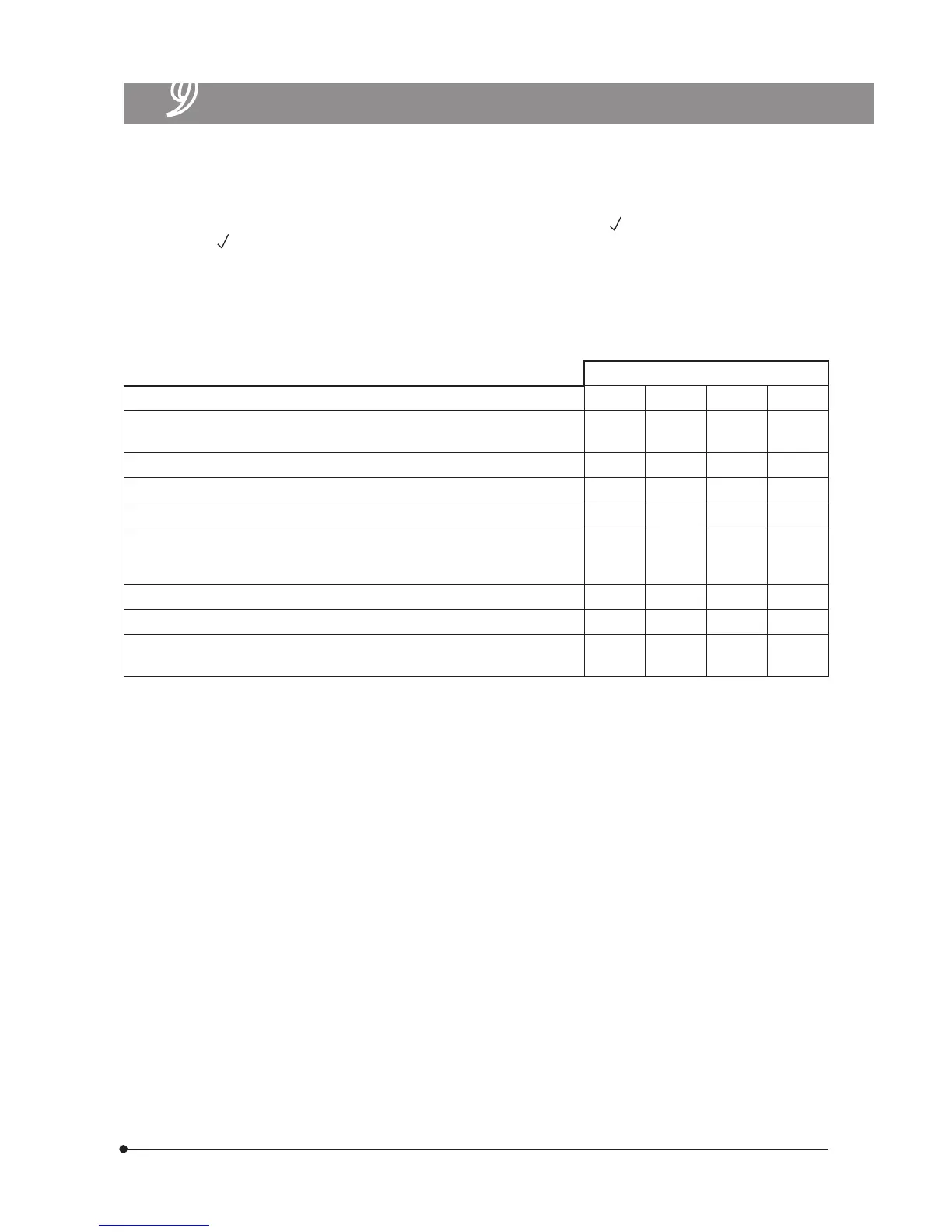 { The table below identifies the check items to be observed. Put (X) if not applicable or (
