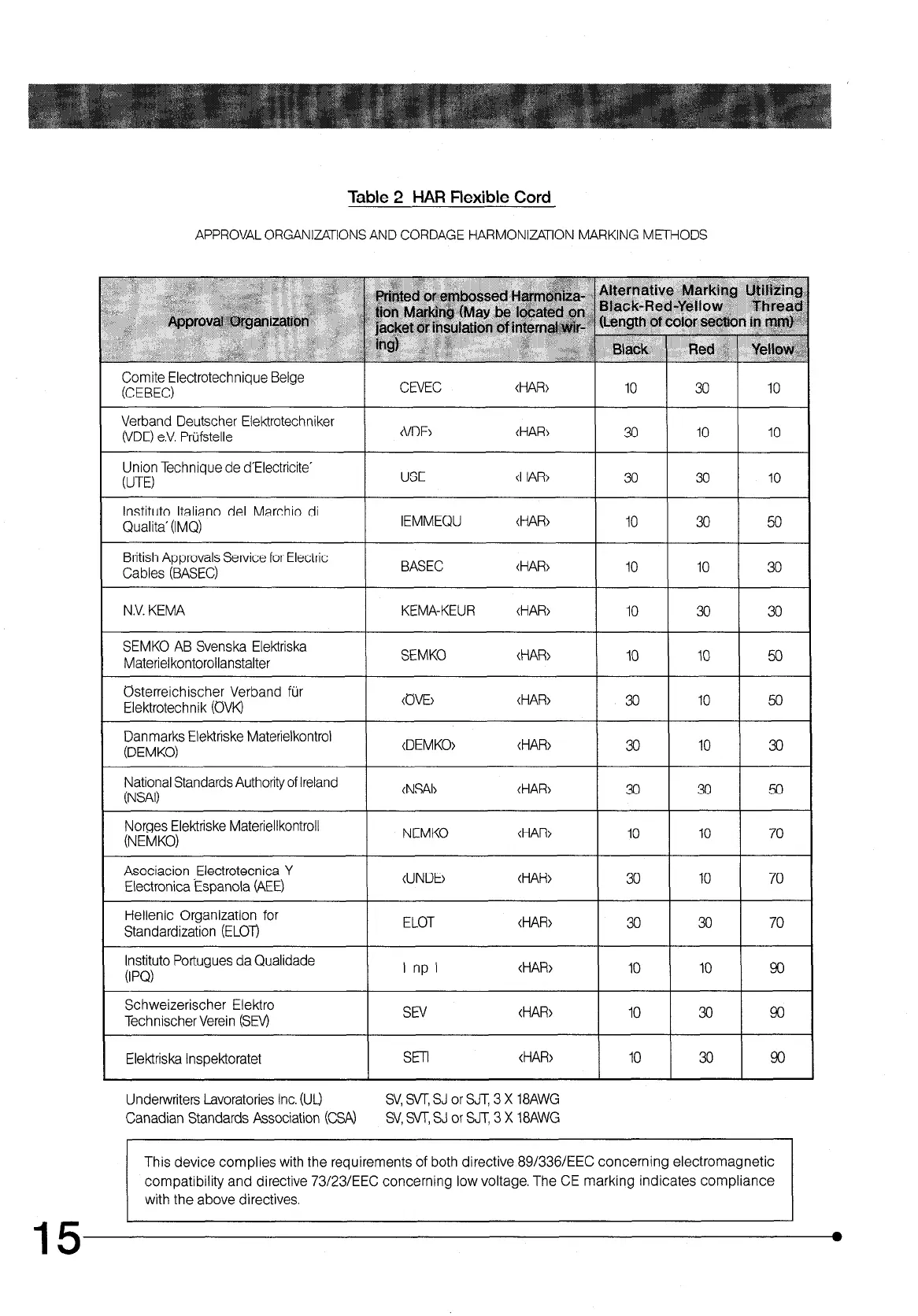 APPROVAL ORGANIZATIONS AND CORDAGE HARMONIZATION MARKING METHODS