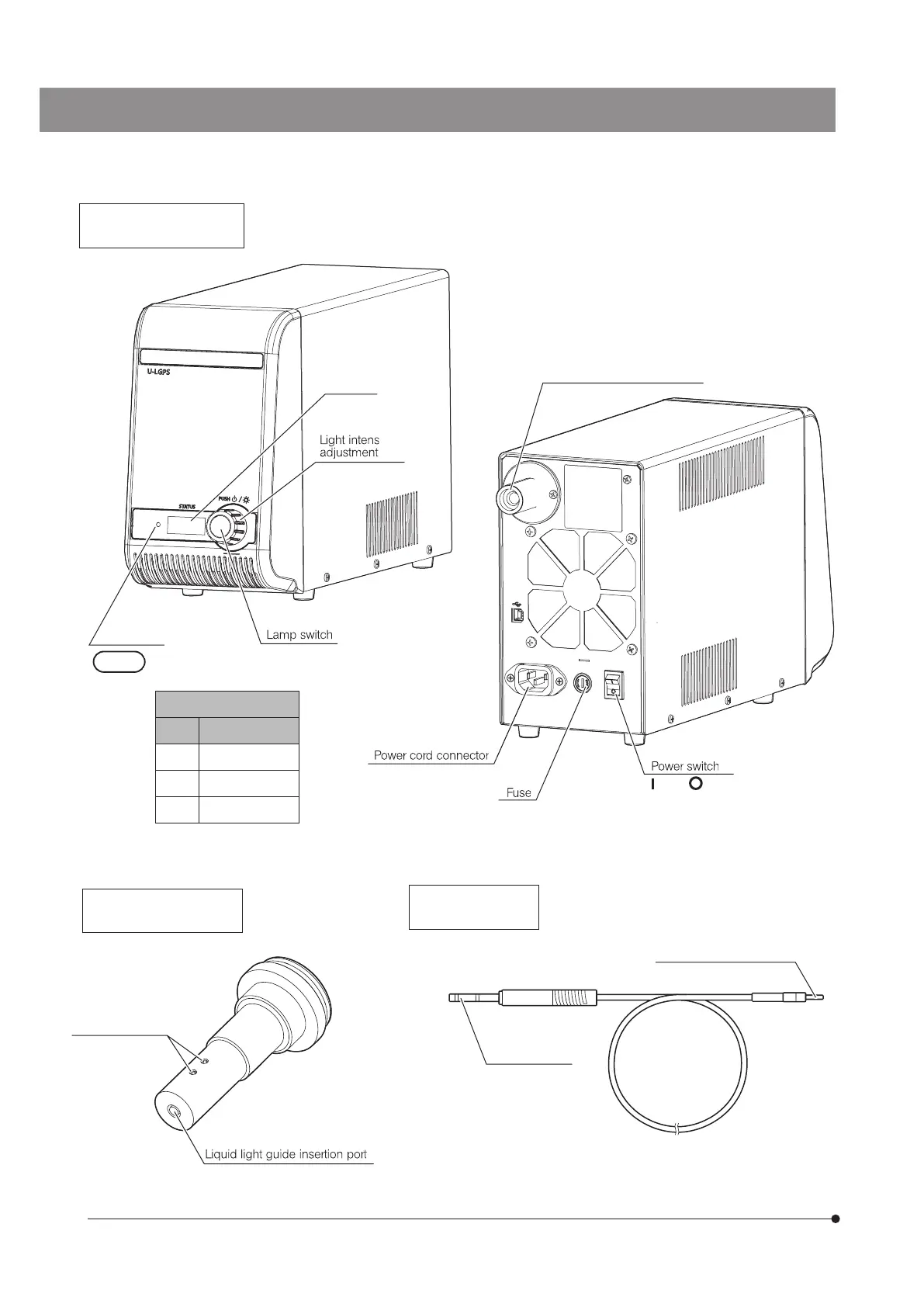 This section describes the nomenclature of main operating portions of U-LGPS, U-LLG150/U-LLG300 and U-LLGAD.