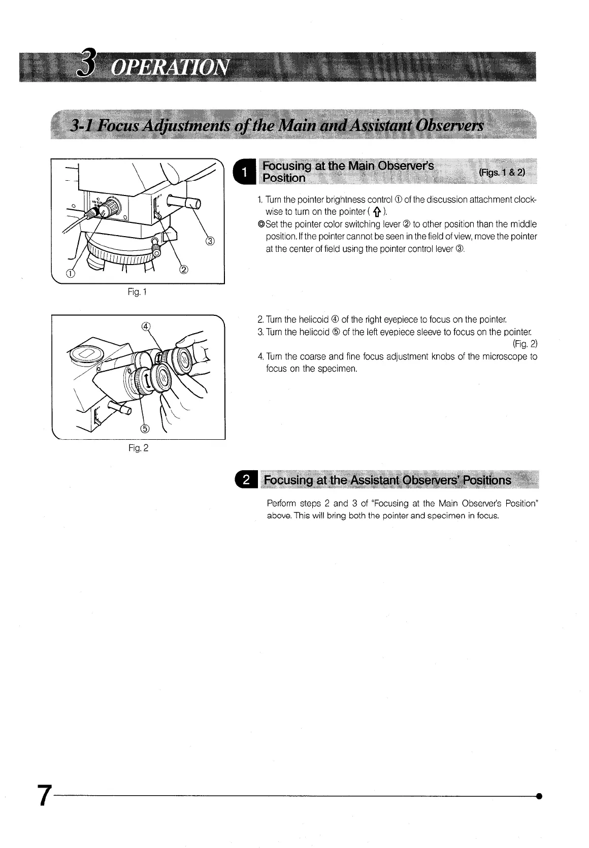 2. Turn the helicoid @ of the right eyepiece to focus on the pointer.