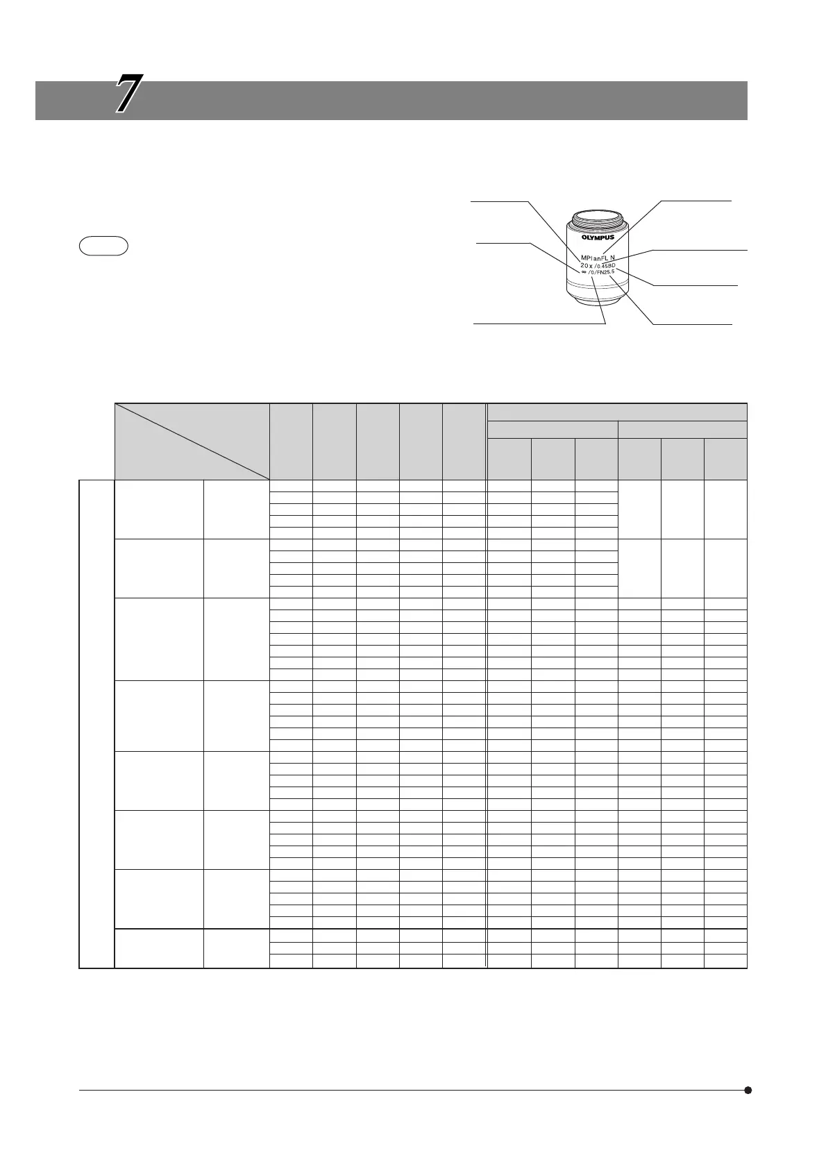 and objective combinations. Objective specifications are marked on