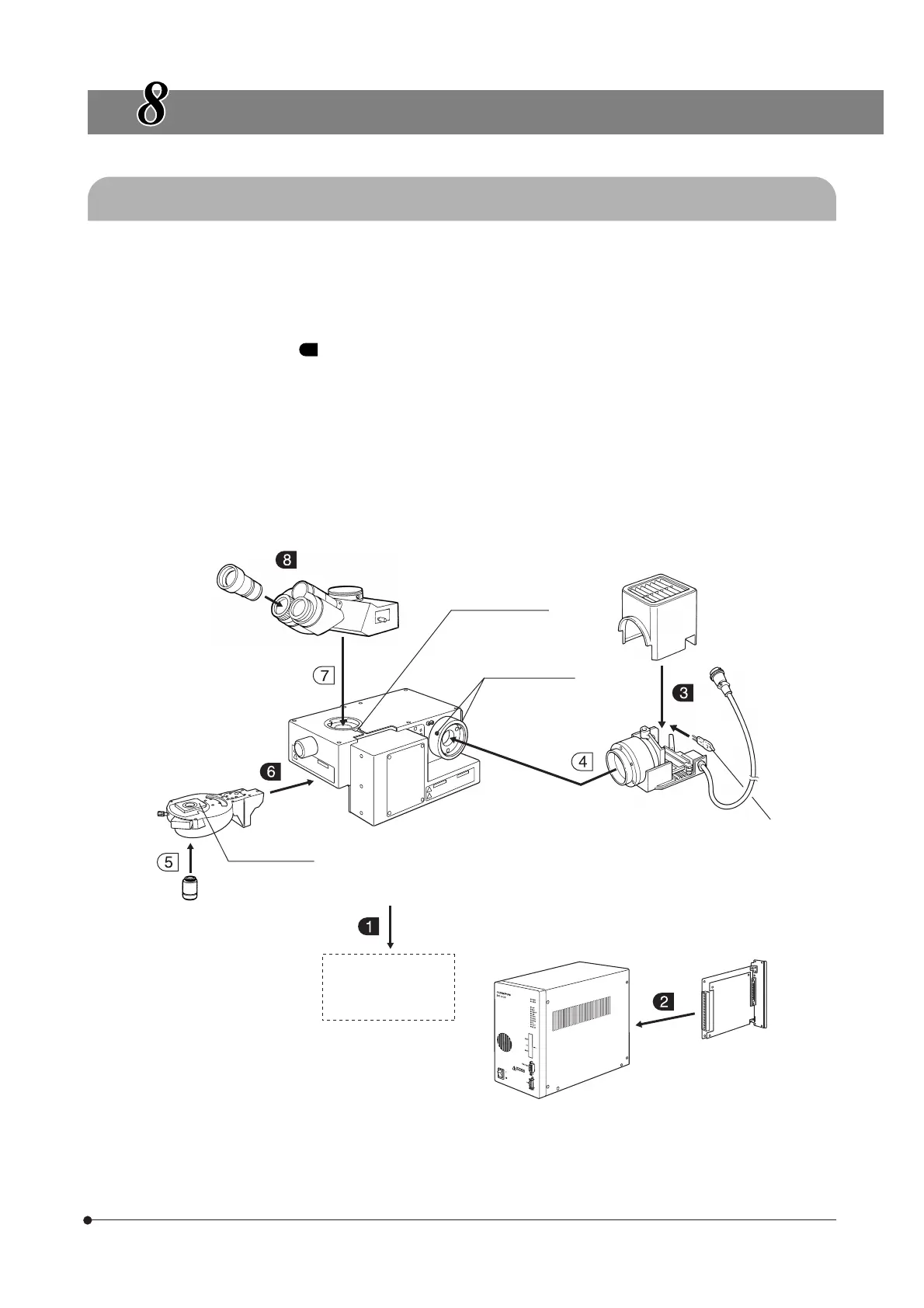 }Assembly steps enclosed in will be detailed on the subsequent pages. Please also refer to the instruction manuals